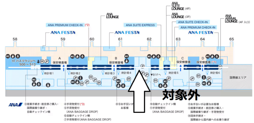 図2. 羽田空港の対象内/対象外の区分(ANAの案内図より引用後加工)