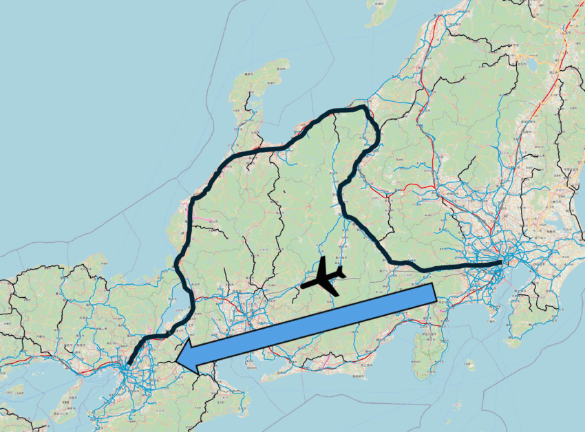 写真10. 東京から大阪の移動はかなり安価になった(再現性が低い方法だが…)