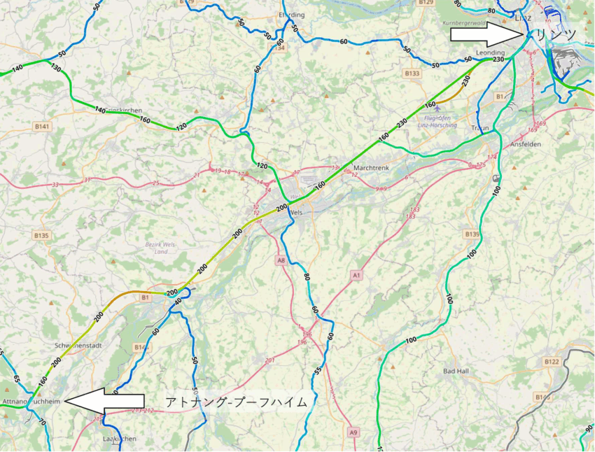 アトナング-プーフハイムからリンツまでのレイルジェット乗車記:現在地