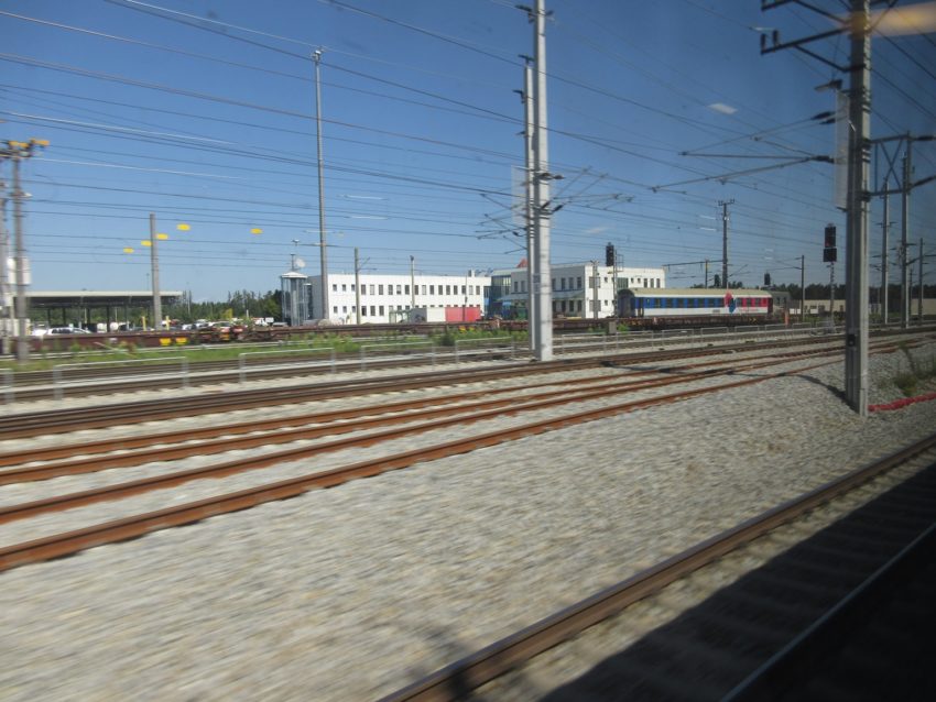 左から線路が合流します(写真13)。巨視的には、フランクフルト方面-ウィーンの経路と、ザルツブルク方面-ウィーンの経路はリンツで合流すると考えて問題ありません。しかし、実際にはリンツの西側のヴェルスで合流します。