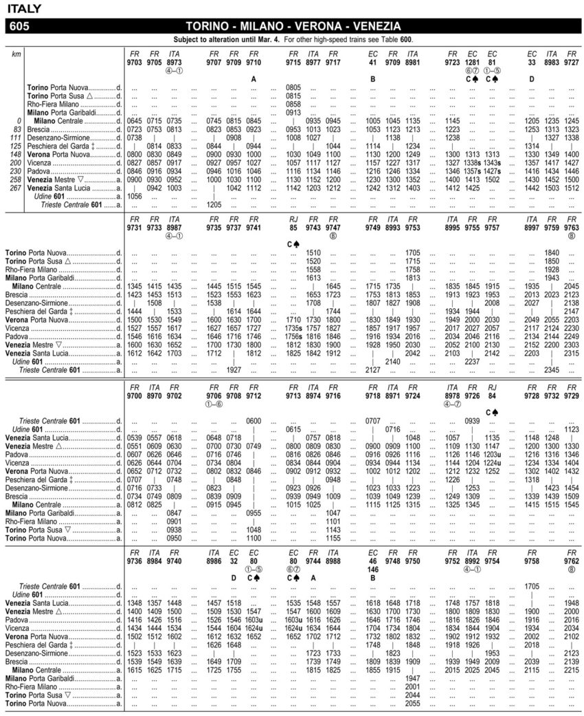(参考)図6. ベネチアとミラノの時刻表(European Rail Timetableより購入後、電子ページより引用)