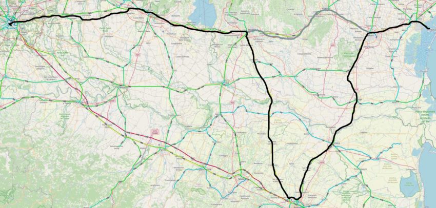 地図の通り、パドバまでは高速新線を走ります(図6)。