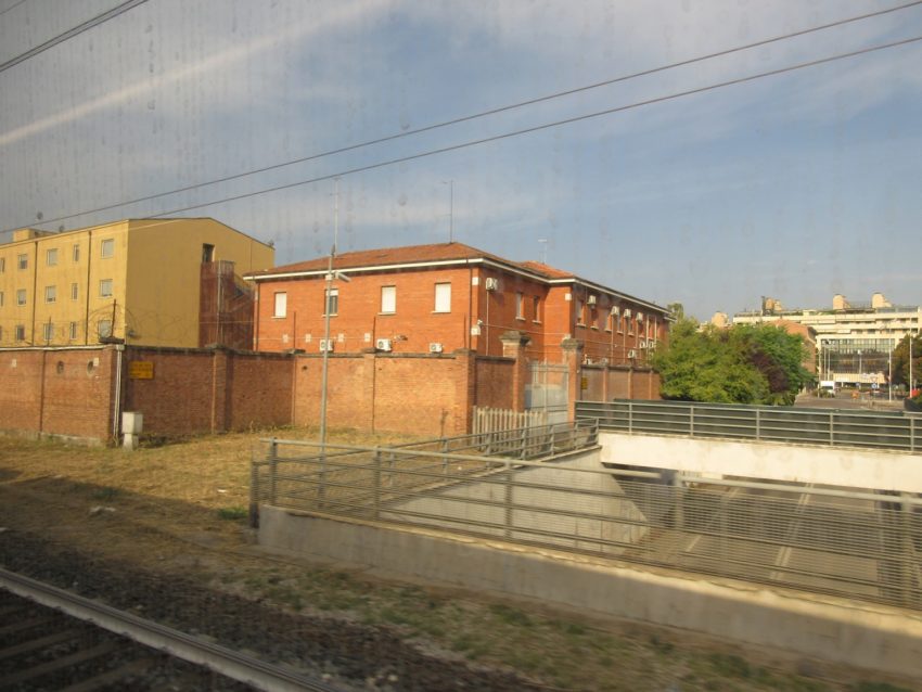 ボローニャの市街地を通ります(写真21)。この列車はもともとボローニャそのものに用はありませんので、中心駅を通らず、ボローニャ郊外の連絡線を通り、再び北を目指します。