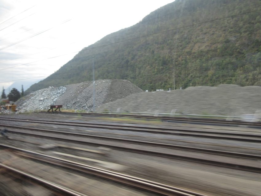 ベルン方面からの線路が近づきます(写真16)。この線路は比較的新しく、ベルン-ツェルマットの行き来の乗りかえ駅がブリークからフィスプに変わり、(ブリークとフィスプの往復がなくなったので)利便性が上がりました。