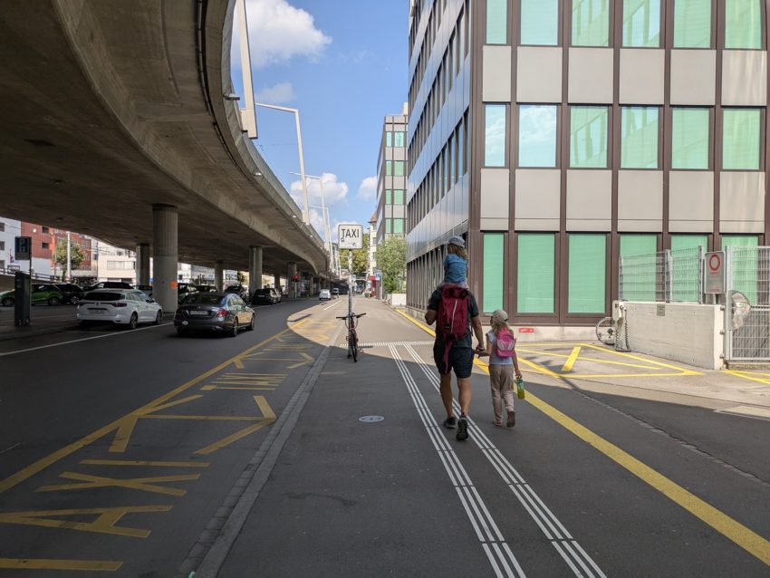 写真3. Bahnhof Hardbrückeから道路に出る