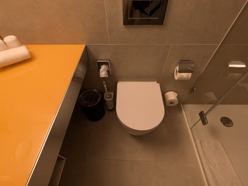 次に水回り周辺を紹介します。洗面台、トイレ、シャワーがまとまっている、ヨーロッパではオーソドックスな配置です。