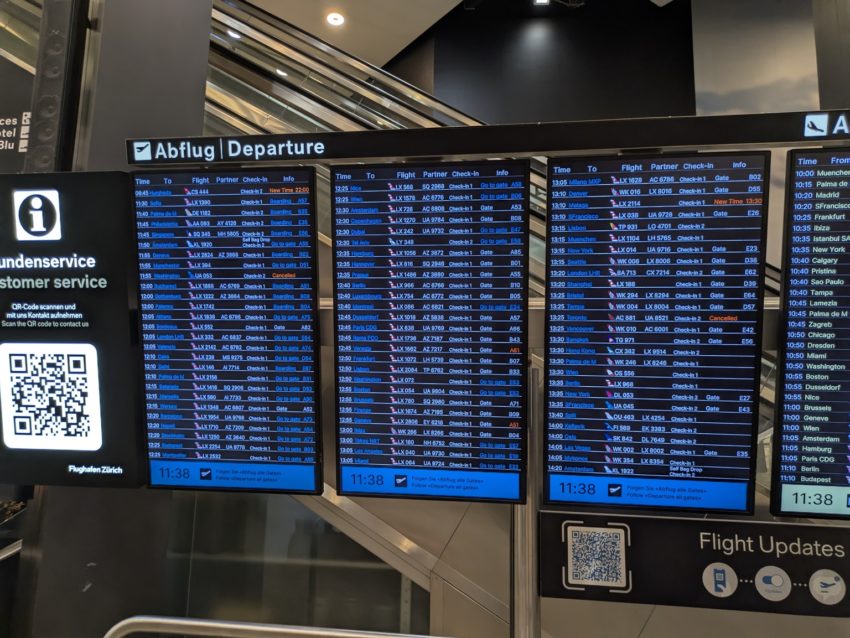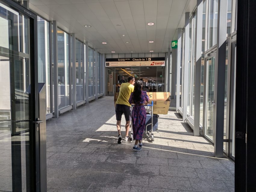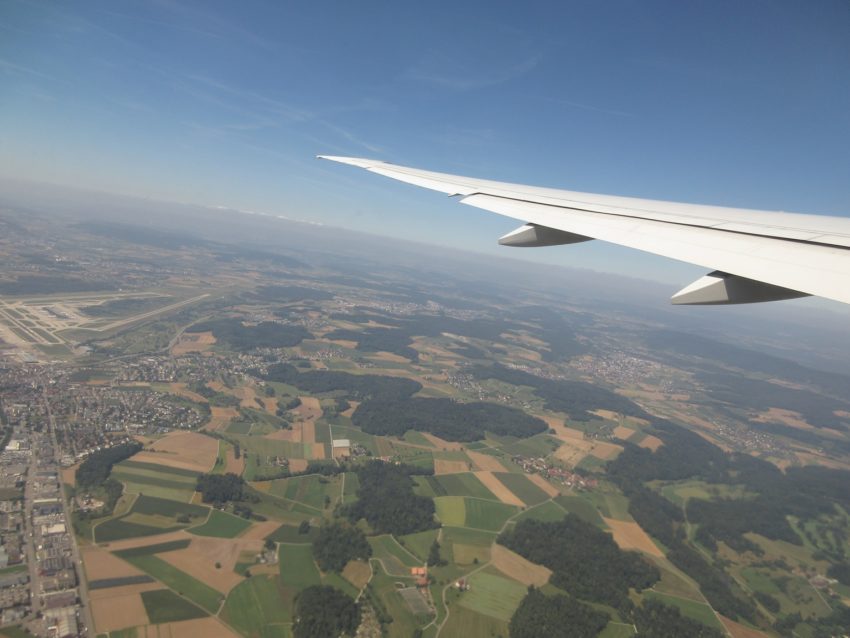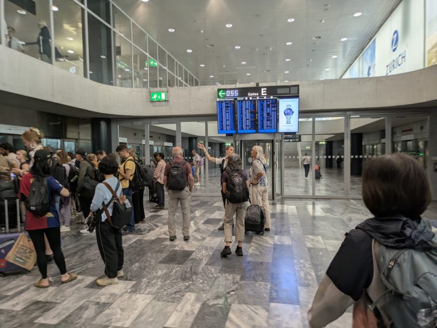 最初にチューリッヒ空港で航空機に乗るために移動します。