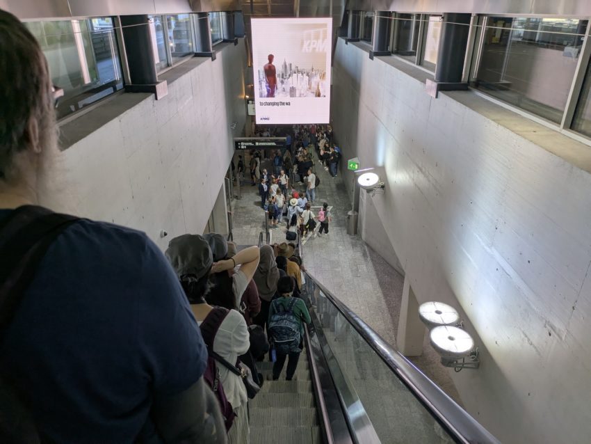 写真19. 多くの人がエスカレータを昇る