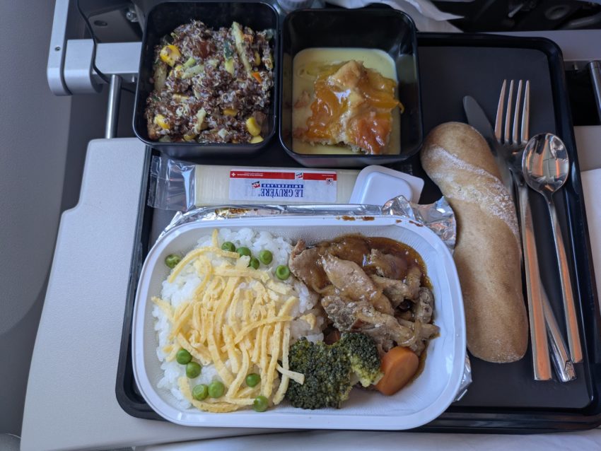機内食が出されます(写真40)。西洋と東洋の間のメニューと感じます。