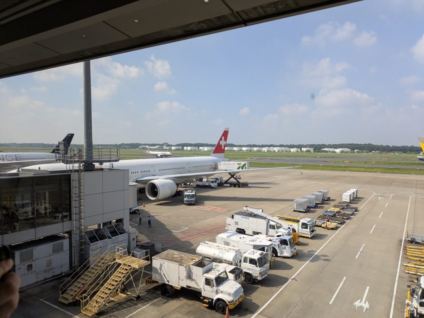 窓の外を見ると、スイス航空の航空機が待機中でした(写真22)。