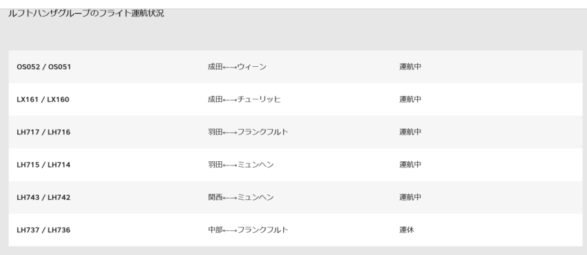 図2. ルフトハンザグループの運航状況(オーストリア航空公式サイトより引用)