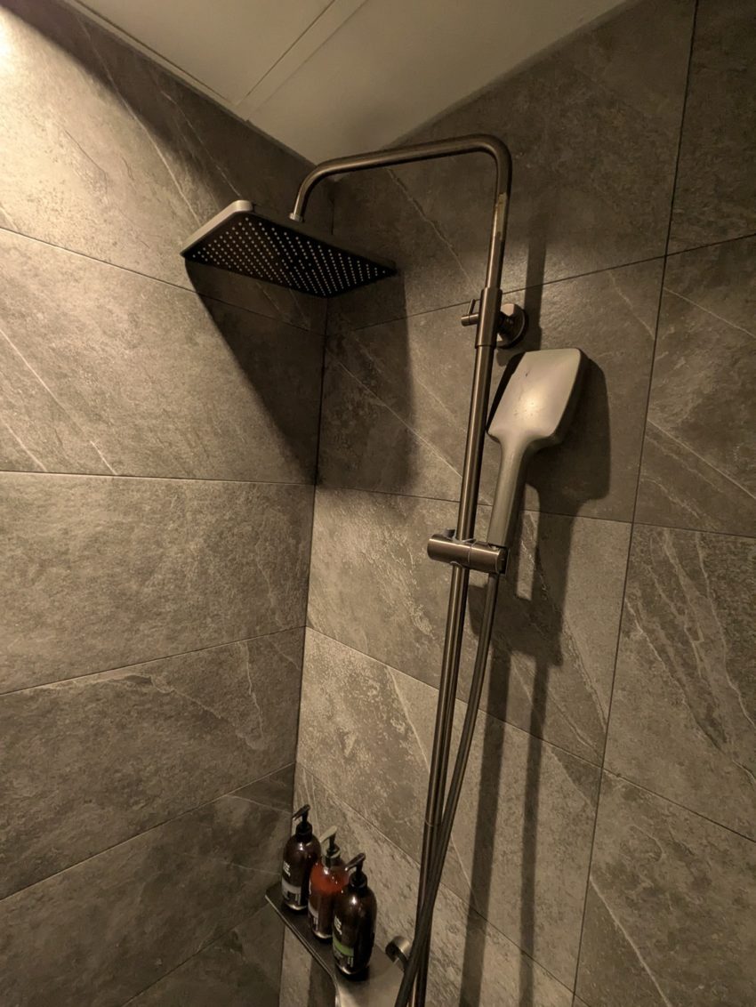 水回りは洗面台を中心にして、左側にシャワー、右にトイレがあります。トイレ側からシャワー側を撮影しました(写真12)。