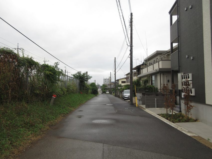 右に曲がり住宅街を進みます。このあたりは碁盤の目に近い道路配置ですので、写真8で紹介した陸橋より手前で右手に進んでも問題ありません。