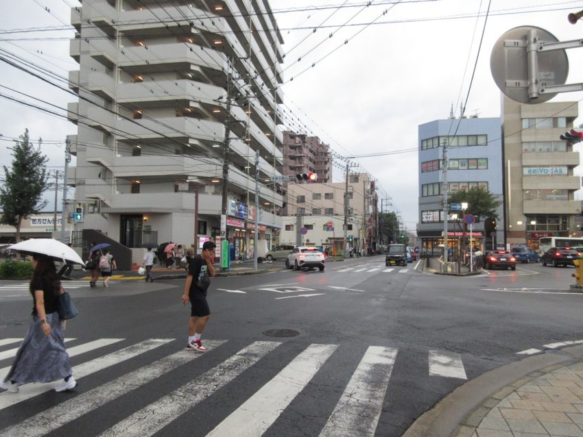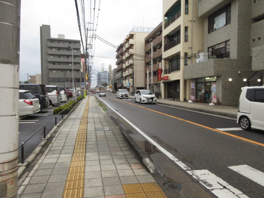 泉・天王台通りの西方向を眺めます(写真13)。こちらは駅前を通ることもあり、交通量は多いです。