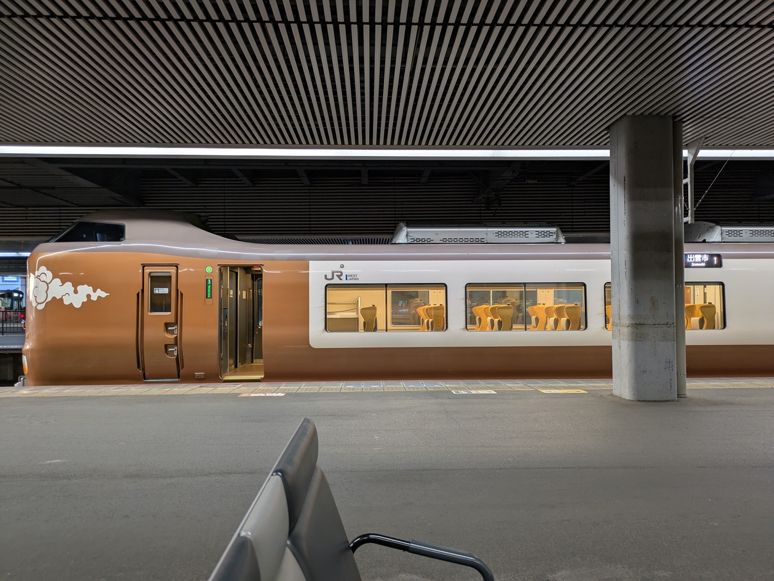 写真6. 悪天候が予測されていたためか、山陰方面の特急列車は空いていた