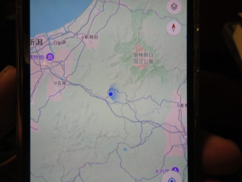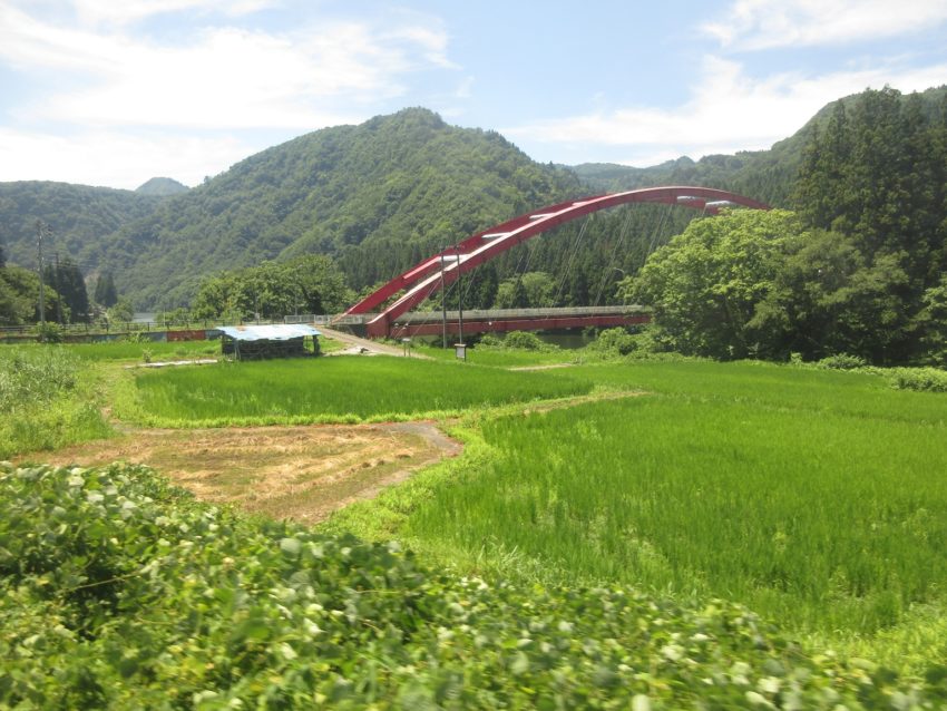 新潟県から福島県に入るところです(写真59)。いいかえると、中部地方から東北地方に入ります。