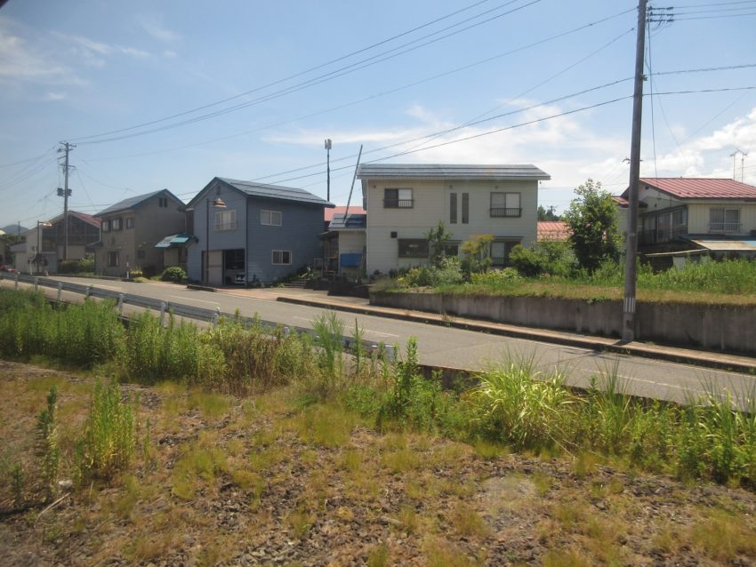 津川を発車し、住宅街を走ります(写真49)。次の鹿瀬でしょうか。