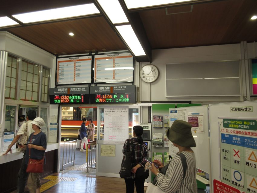 喜多方から乗る人も見えました(写真82)。会津若松での接続列車はありません(郡山方面は-6分接続、会津田島方面は-2分)が、喜多方と会津若松の移動や体験乗車という側面もあるのでしょう。