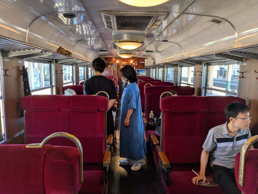 車内はそこまで混雑していません(写真18)。見知らぬ人と同じボックス席を共有する事態も想定していただけに、これはありがたいことでした(このような旅を好む人もいるでしょう)。